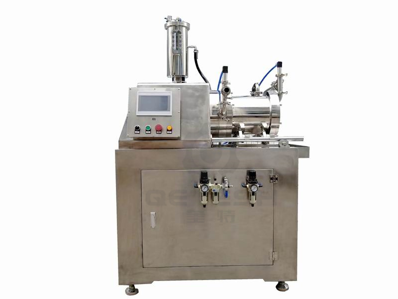3、合适的研磨缸高径比,高径比较小使用0.05mm-1.0mm磨介,流量恒定、大流量出料、无堵塞、无漏珠