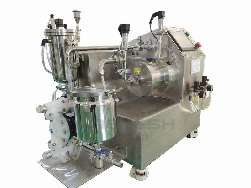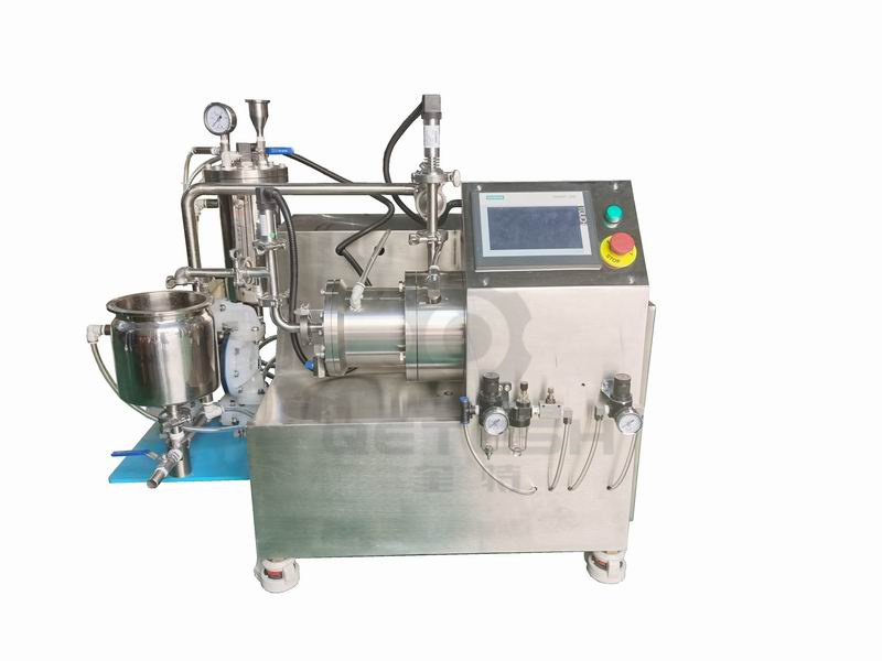 3、适宜的研磨缸高径比,高径比较小使用0.05mm-1.0mm磨介,流量恒定、大流量出料、无堵塞、无漏珠