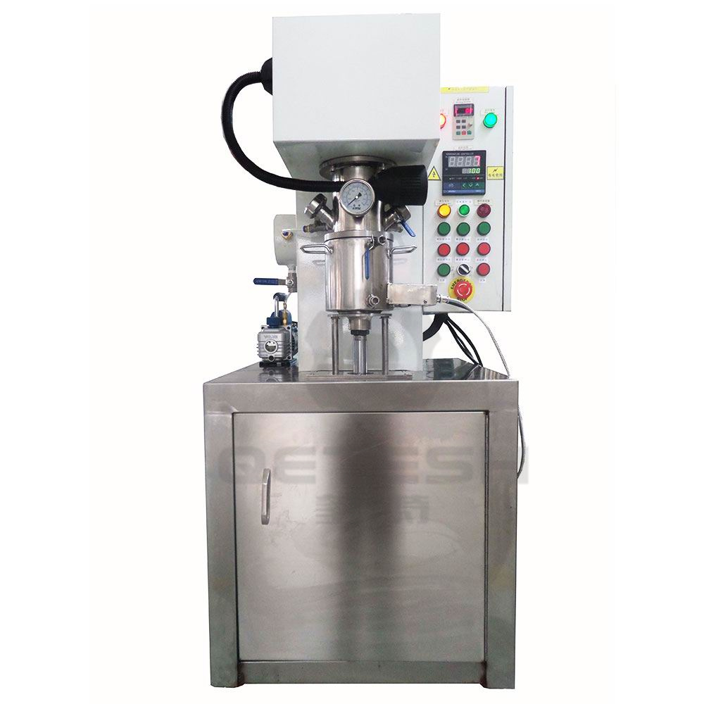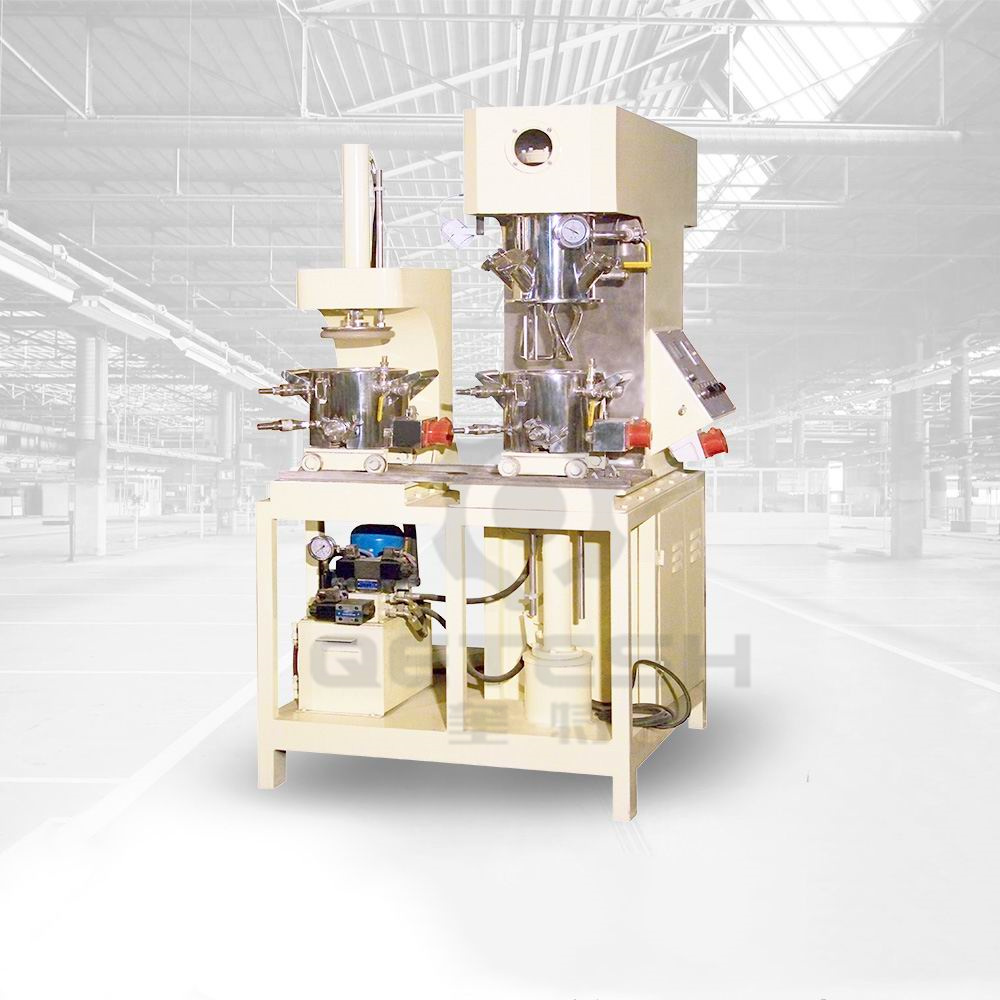 5、集成化高   预混、搅拌、周转、过滤诸环节无缝快拆式对接,与空气无接触。可PLC全自动控制,速度、温度、升降、真空系统,可集成在一张面板上控制。